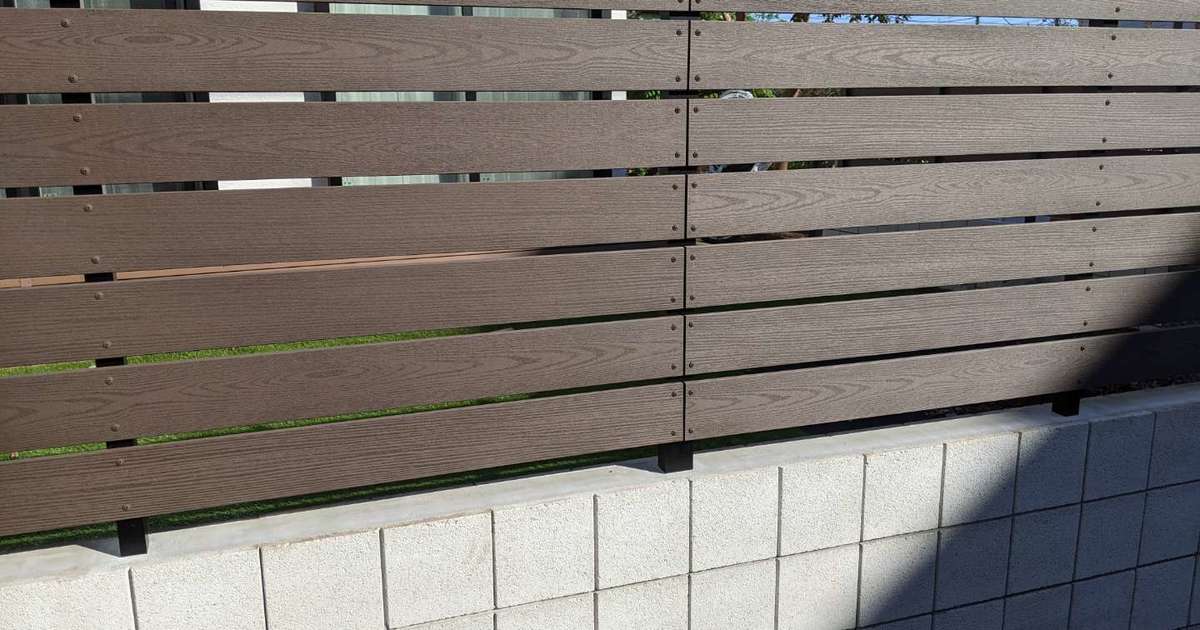 樹脂製目隠しフェンスです。アルミとまた、違う風合いが、あります。木目も入ってちょっといい感じ。