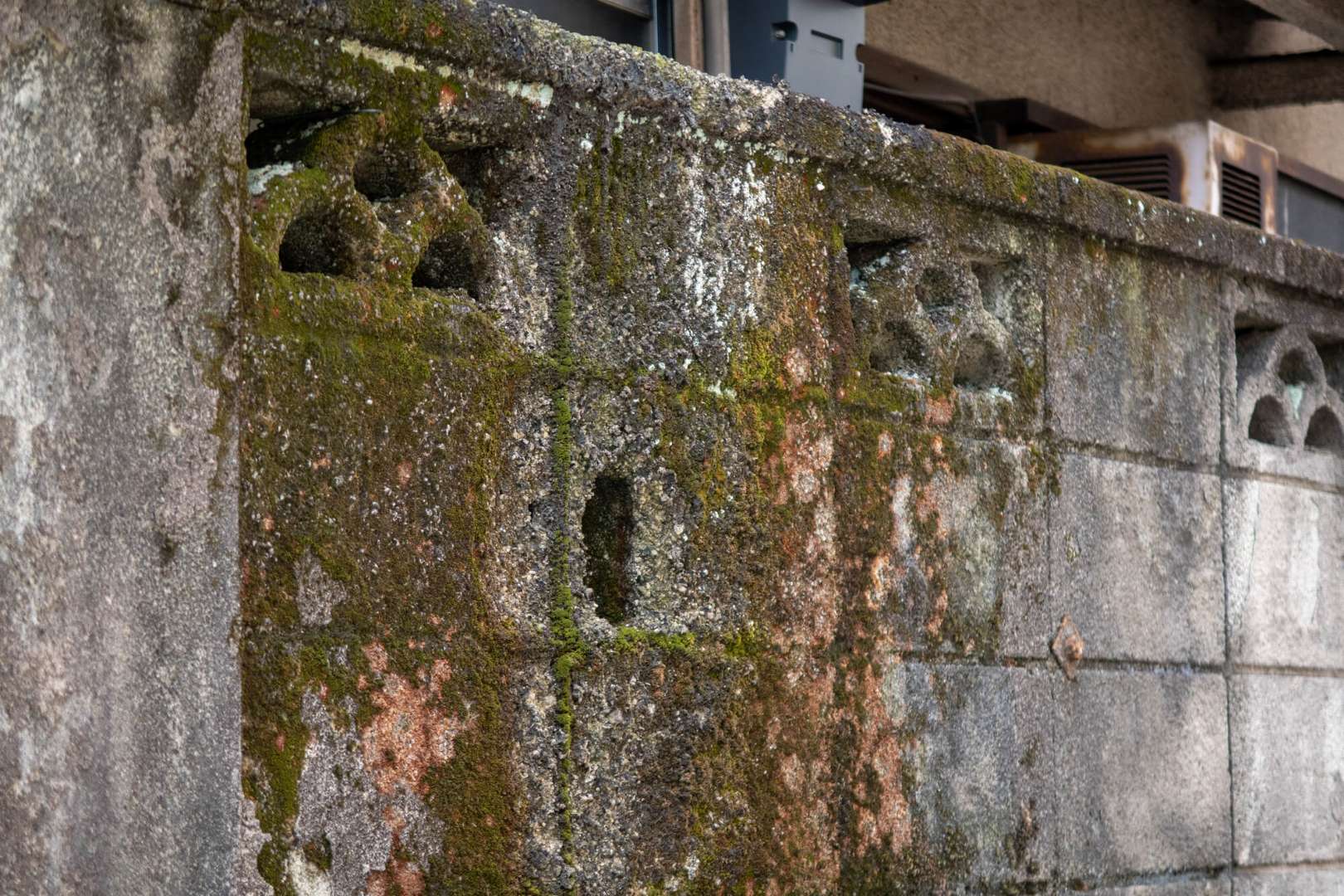 コンクリートブロックはセメントを原料としており、通常はph12~13の強アルカリ性です。そのおかげで、内部の鉄筋がサビるのを防いでいます。ところが、苔やカビが生えていると、ブロックのphを下げる「中性化」が促進されます。その結果、内部の鉄筋の耐腐食性が低下し、サビついてしまうのです。普段から丁寧に掃除をし、対応しきれないほどの苔やカビが生えてきたら、補修を検討しましょう。