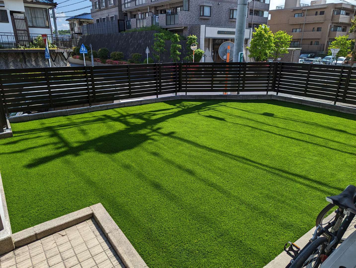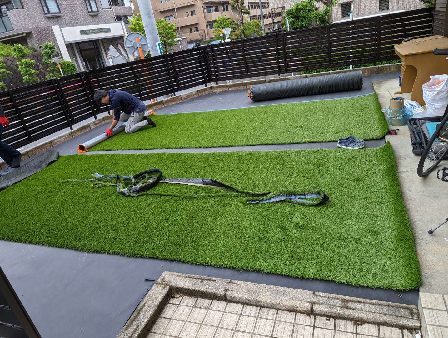 先日、お客さまの庭を天然芝から人工芝への張り替えを行いました!