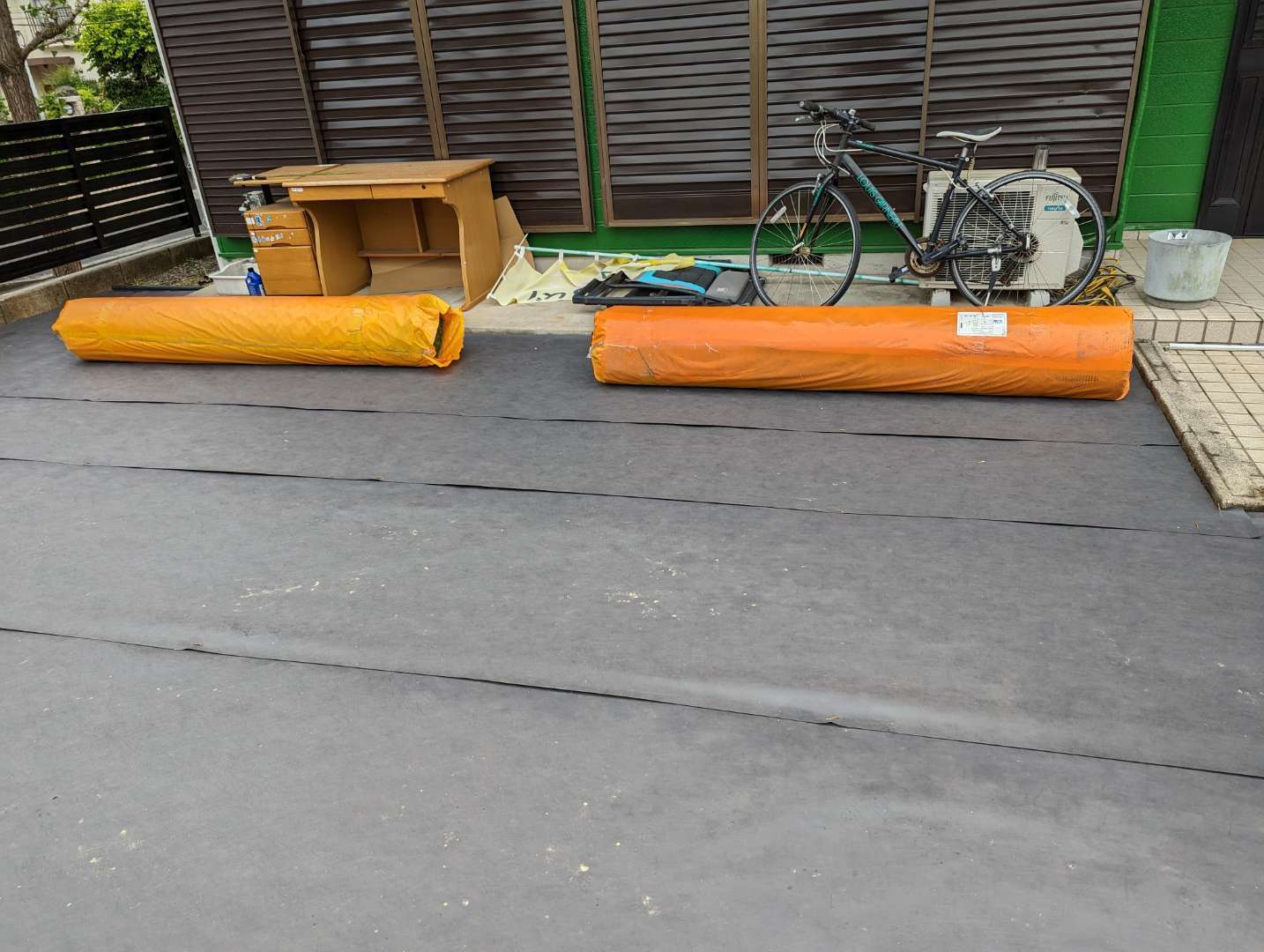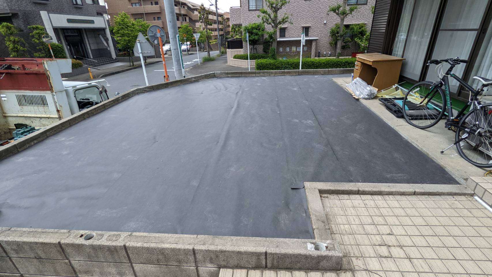 まずは、芝と雑草を取り、整地・路盤工事をして、防草シートを貼り、人工芝を貼りました。